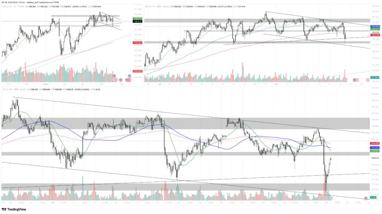 中期MA付近 or 上昇トレンドライン付近での急反発は要注意。