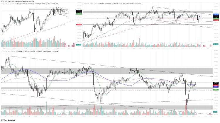 + 1時間足の短期MA中期MAが上向くのを待ちたい。